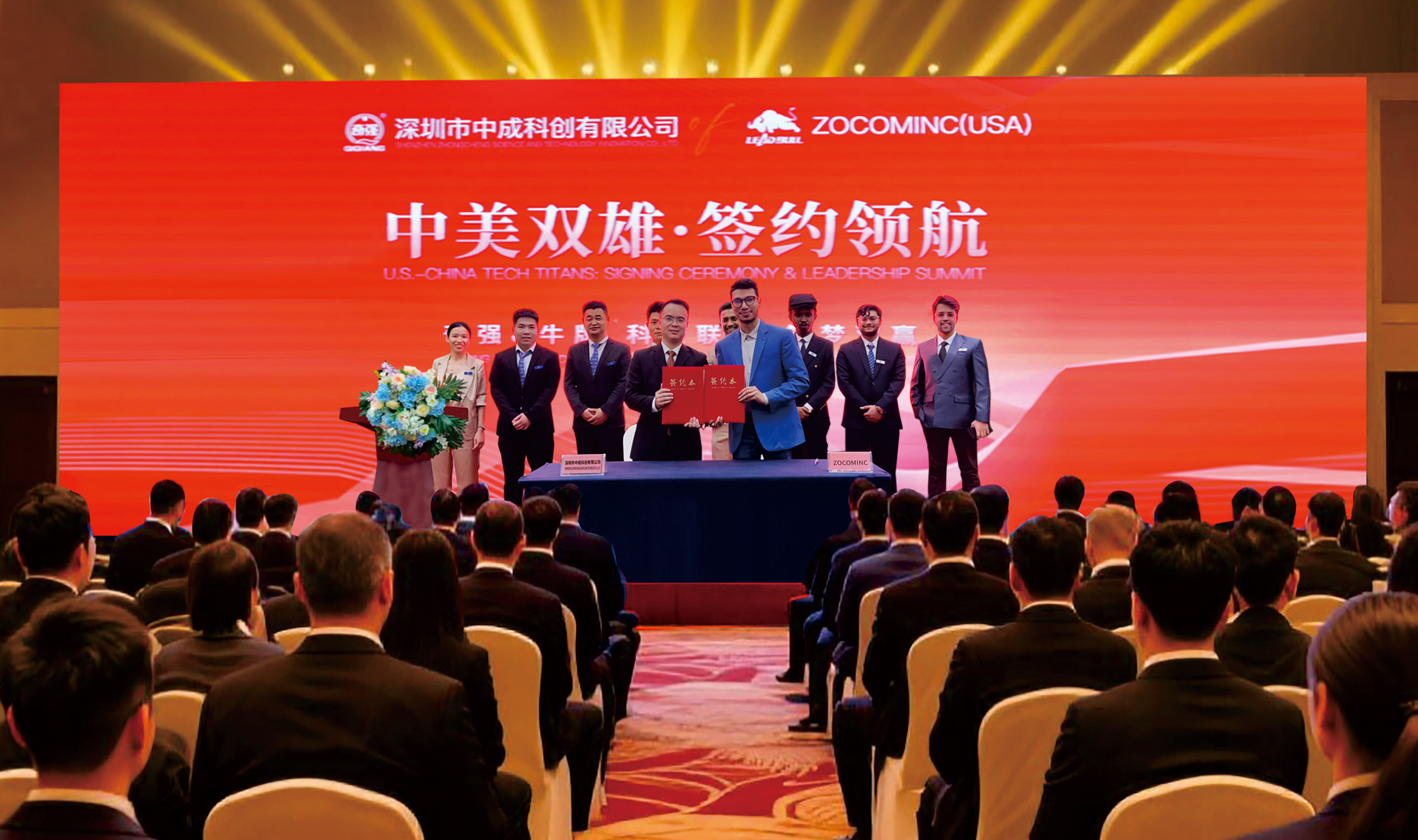 9月8日,深圳市中成科创有限公司与美国ZOCOM INC公司在深圳希尔顿酒店隆重举行战略签约仪式,双方以“中美双雄、签约领航”为主题,开启深度合作。地方政府领导高度评价此举为“推动产业升级、深化国际合作的典范”。央视网、人民网、新华网、人民日报客户端等8家权威媒体现场报道,共同见证这一具有行业突破性和国际影响力的里程碑时刻。